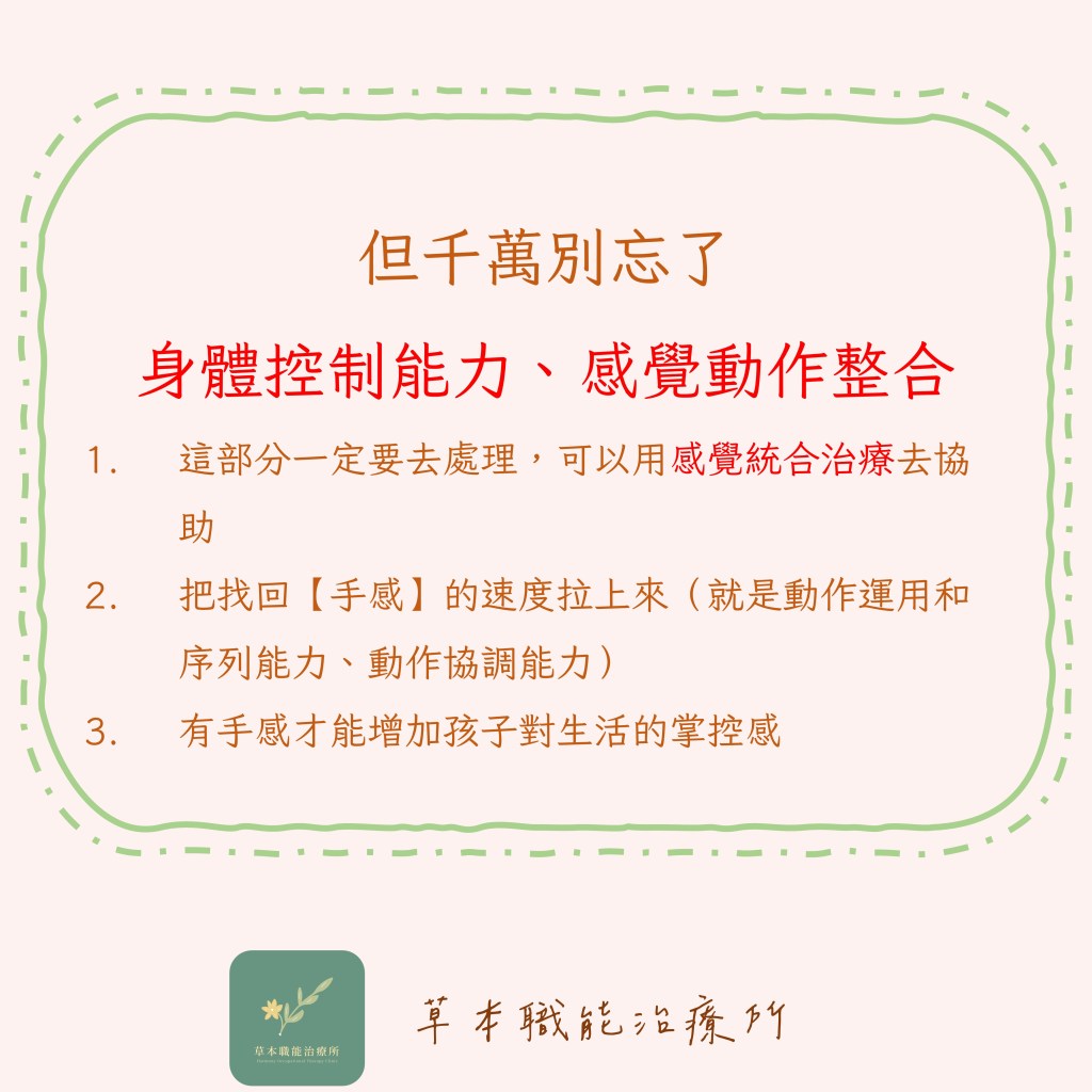 - 因為感覺調節困擾,對他們而言難以連結大腦的動作和感官經驗。