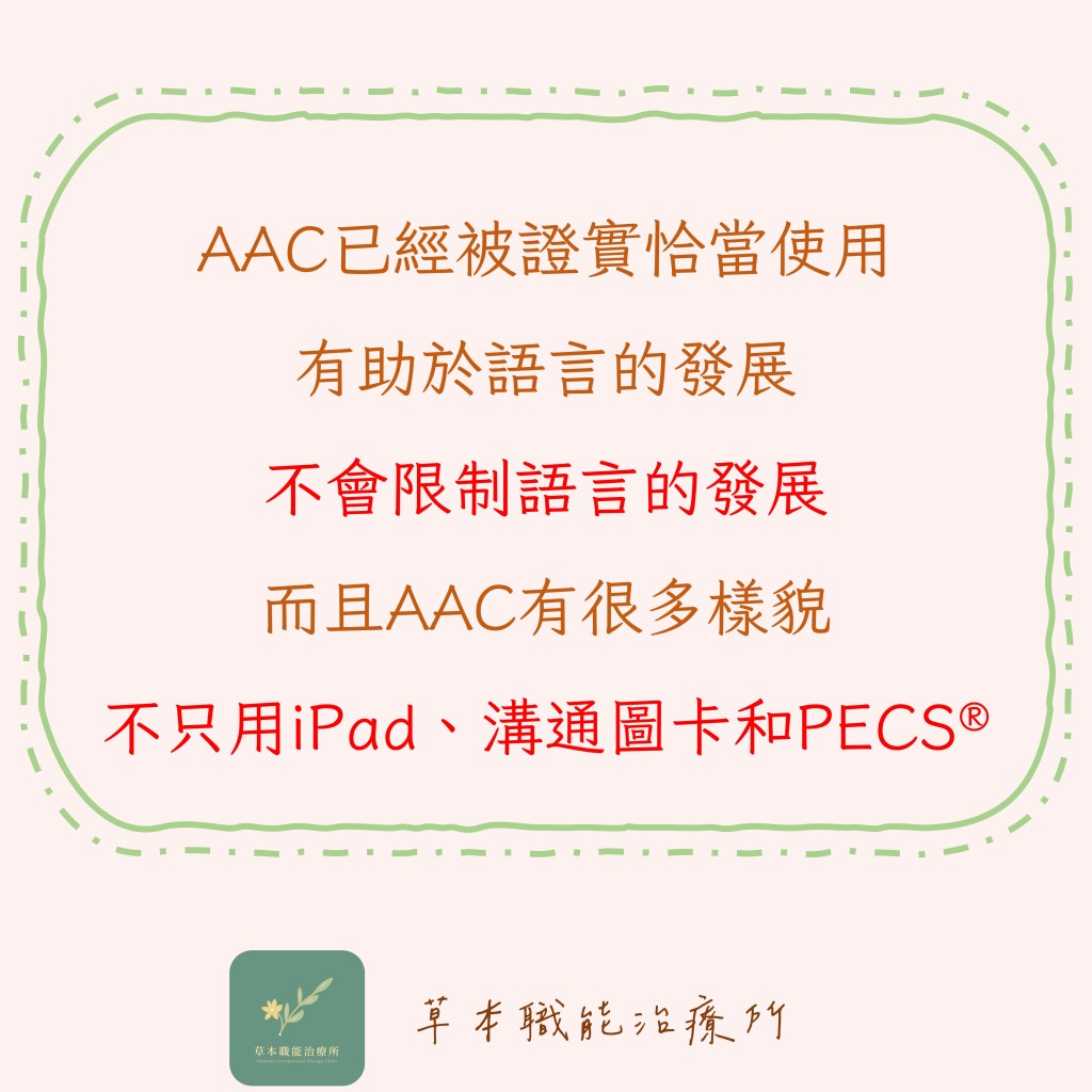 家長經常有迷思認為AAC用了就不會說話,或是AAC都用iPad,