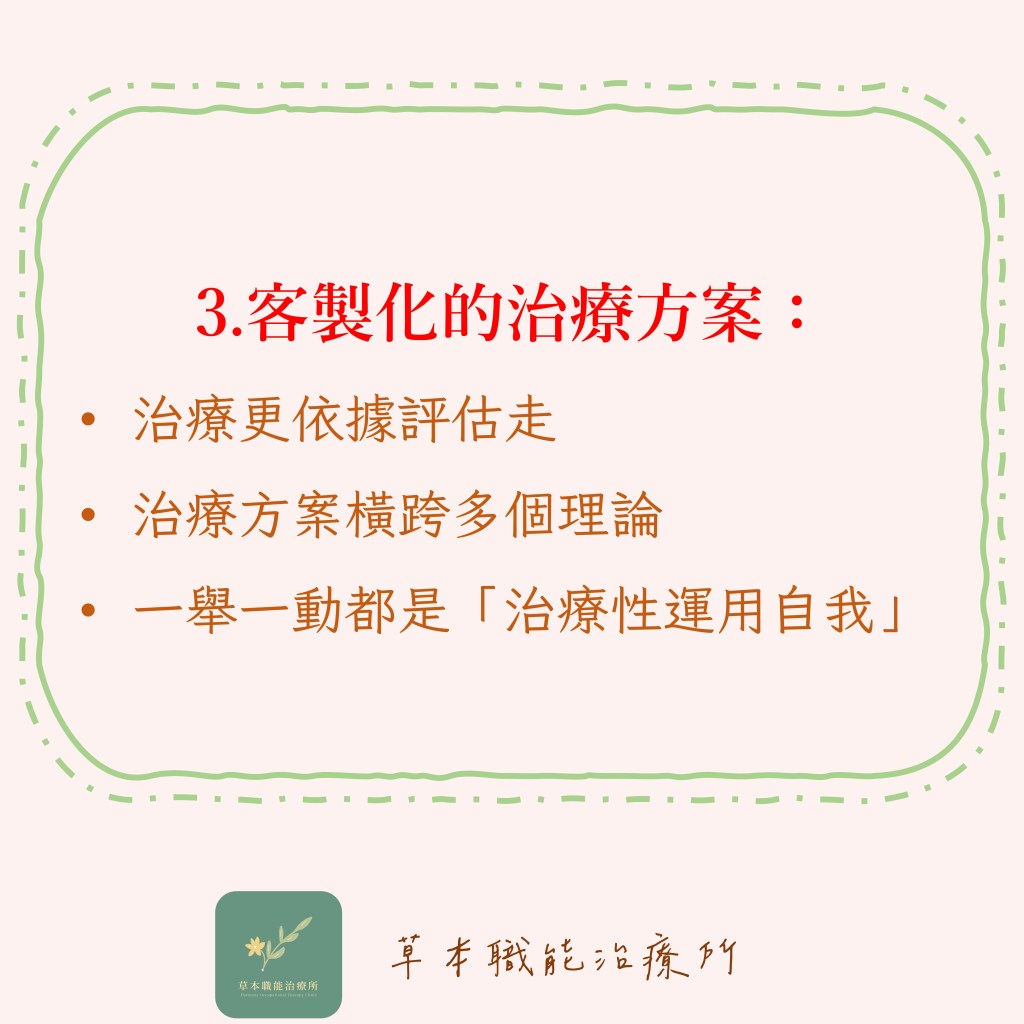 而且這個過程中,我們非常鼓勵家長進來看,這樣才能把技巧帶回家練習,真正的貼近生活需求。 - 客製化的治療方案