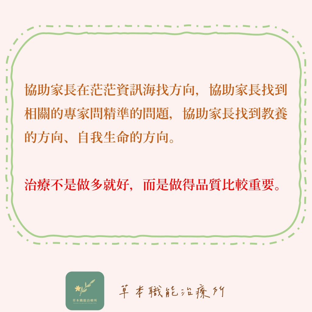 我們可以提供的計畫會很長遠,讓家長可以少走一些冤枉路。