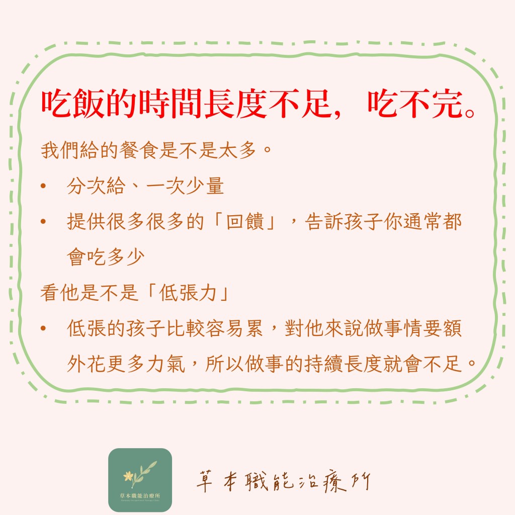 📌孩子吃飯的時間長度不足,導致吃不完。