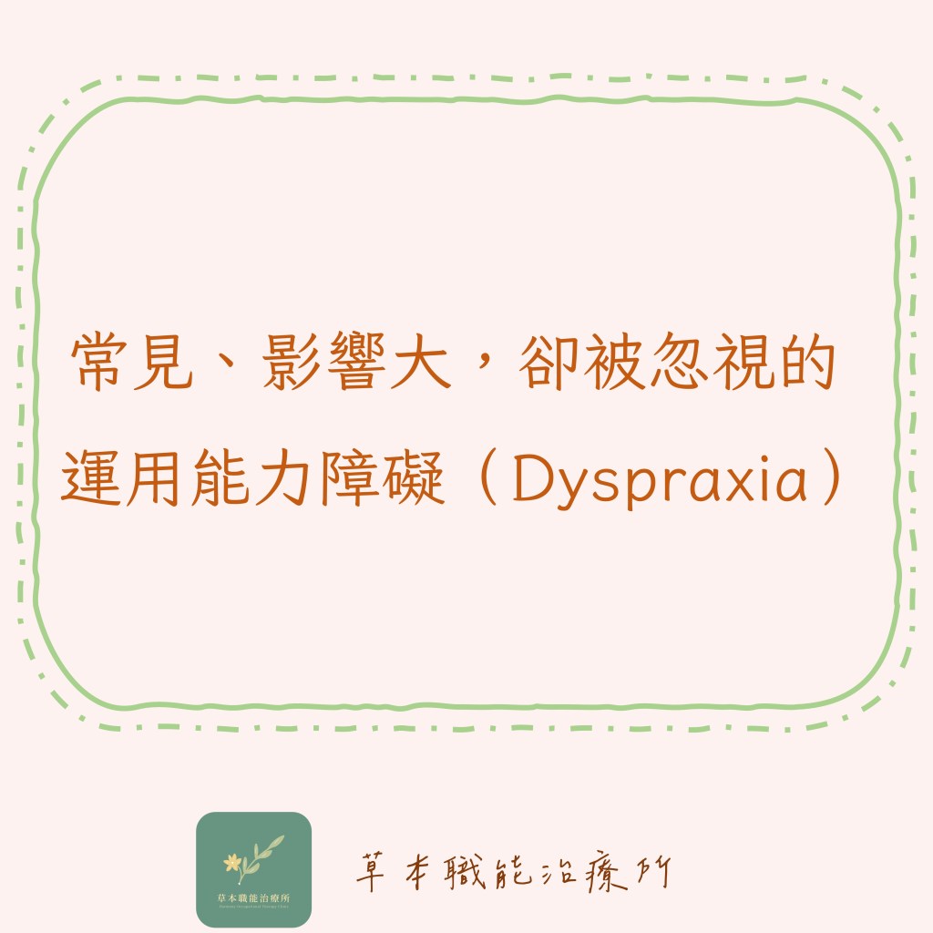 而事實上這群裡面很多人就是「知動型學障」,我們會發現啊,單純的讀寫型、書寫型、數學型的學障真的很少,通常這幾種學障都會伴隨知覺動作問題,這個知覺動作問題中,有很大一塊就是「運用能力障礙」。