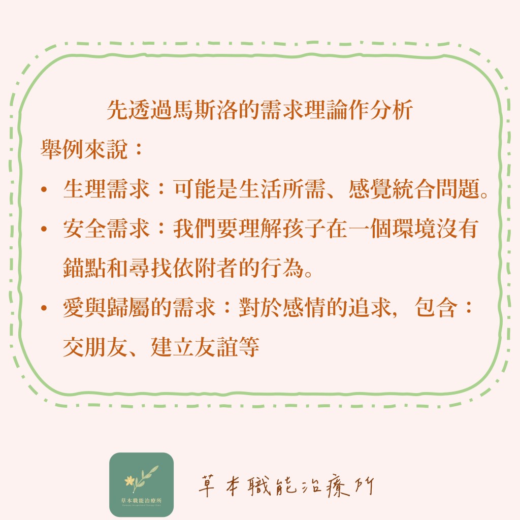 最好理解的方向是從馬斯洛開始,這個理論提供我們去找孩子的需求的方向,由最底層向上找,通常找得到為什麼?